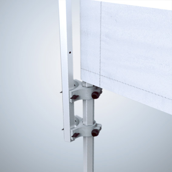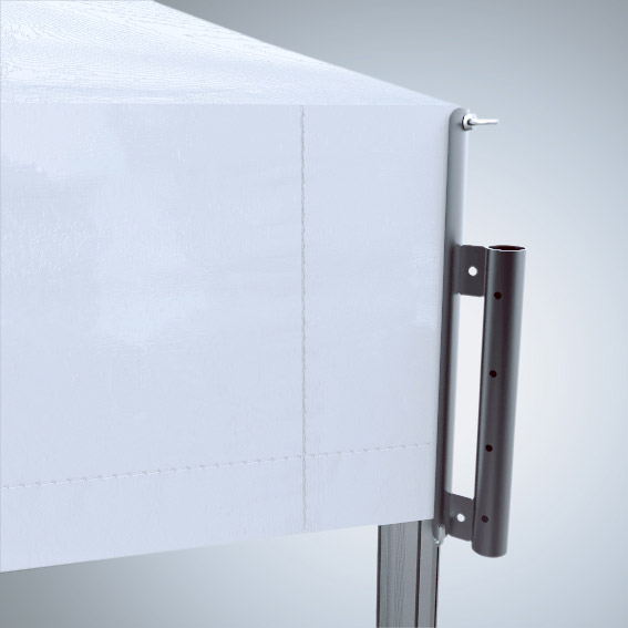 Soyez plus visible grâce Ă ce support amovible permettant d’accrocher, en toute simplicitĂ© et sans outil, une voile sur le pied d’un barnum pliant VITABRI.