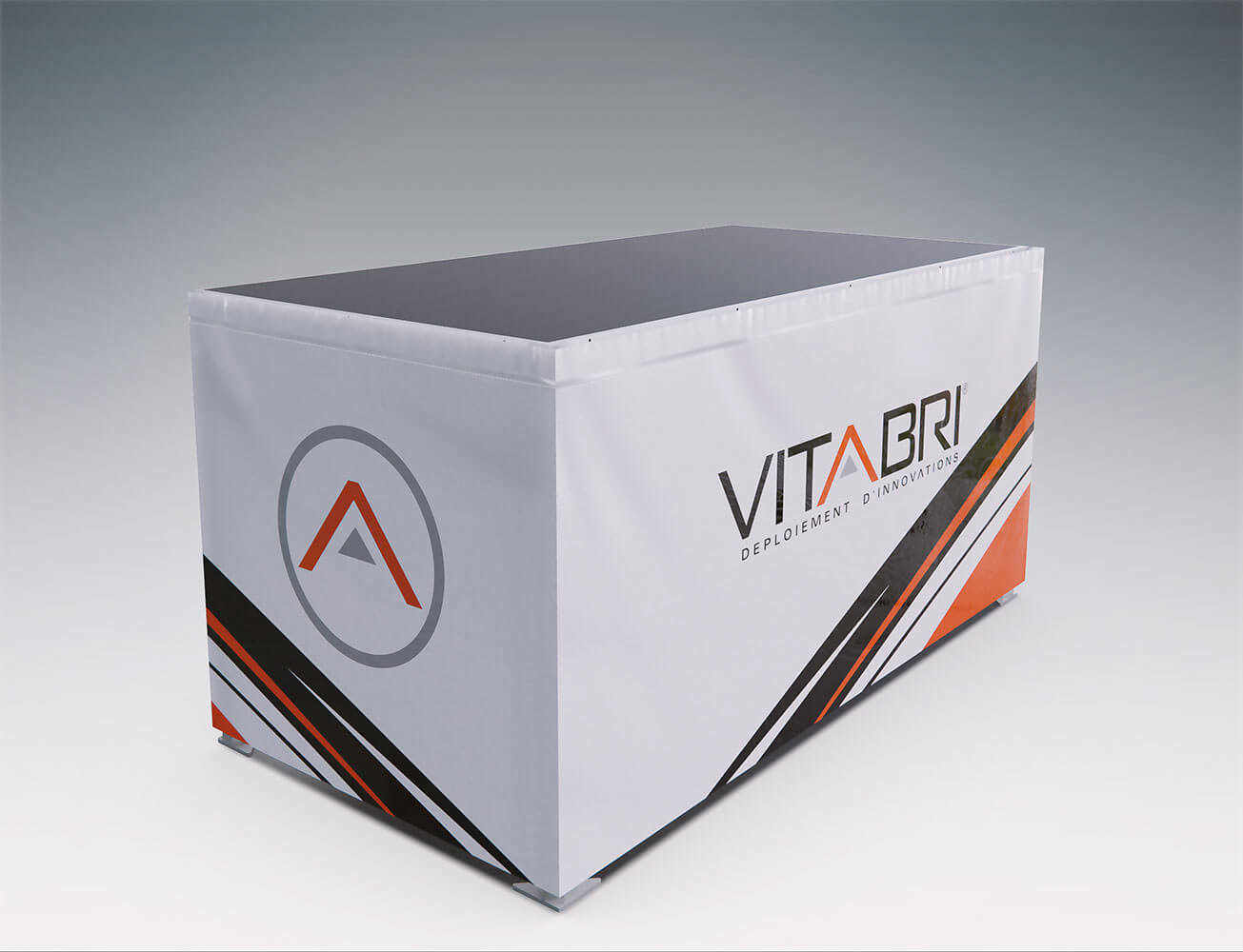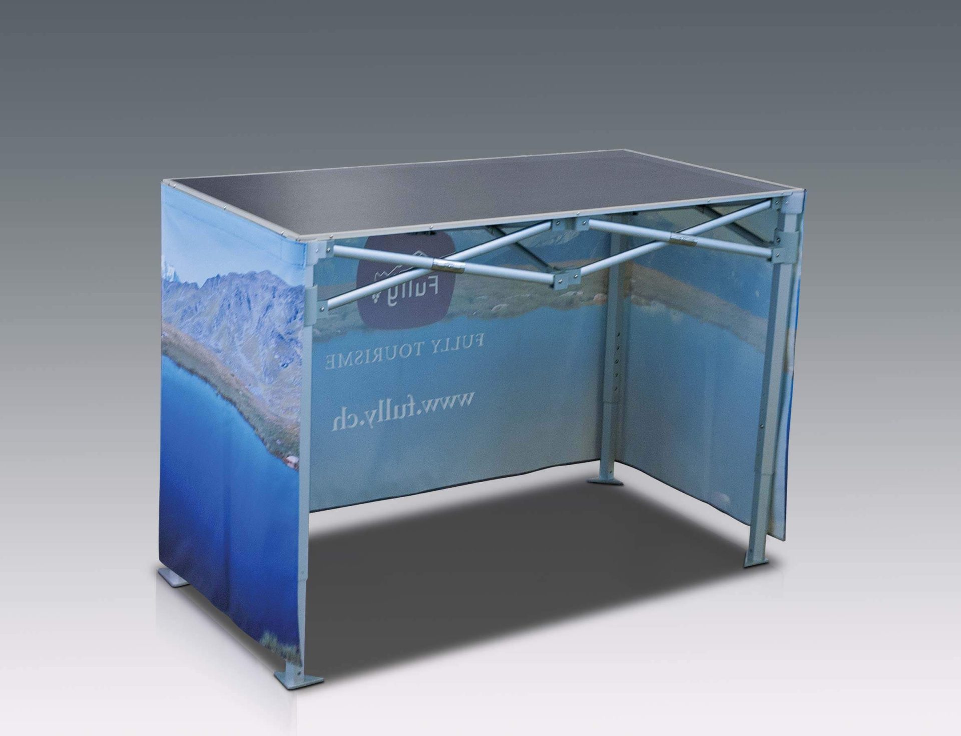 Table pliante en aluminium réglable en hauteur avec plateau. Pratique, facile à monter et peu encombrante.